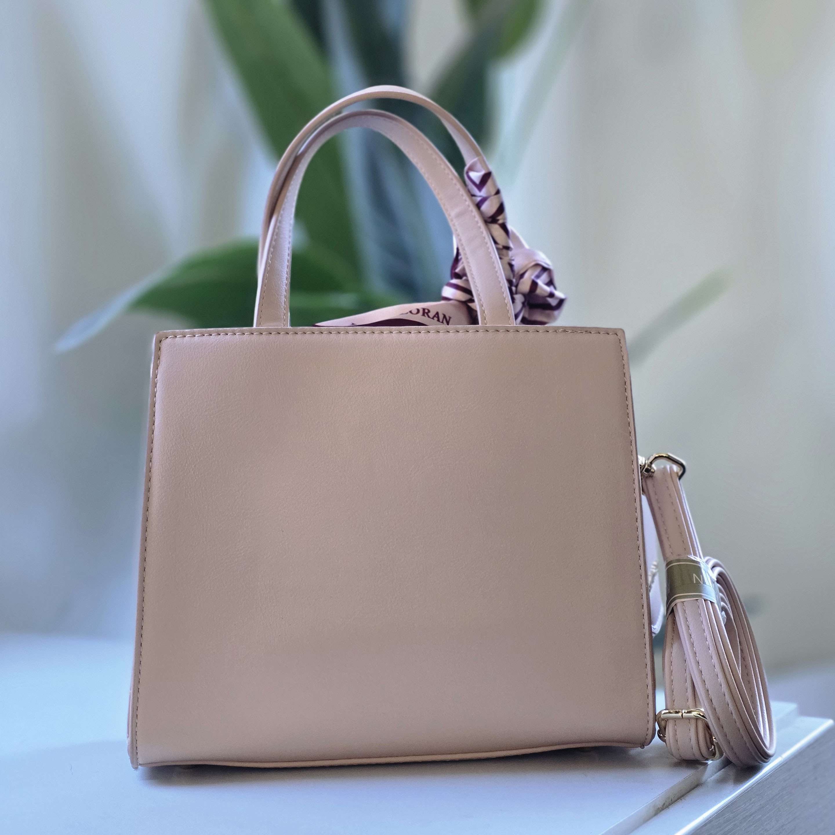 Blush Pink Mini Handbag with Decorative Scarf