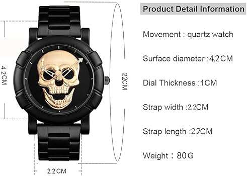 Specifications of SKMEI Men Cool Skull Quartz Watch Creative Alloy Strap Punk Watches Men Clock Waterproof Wristwatches 9178
